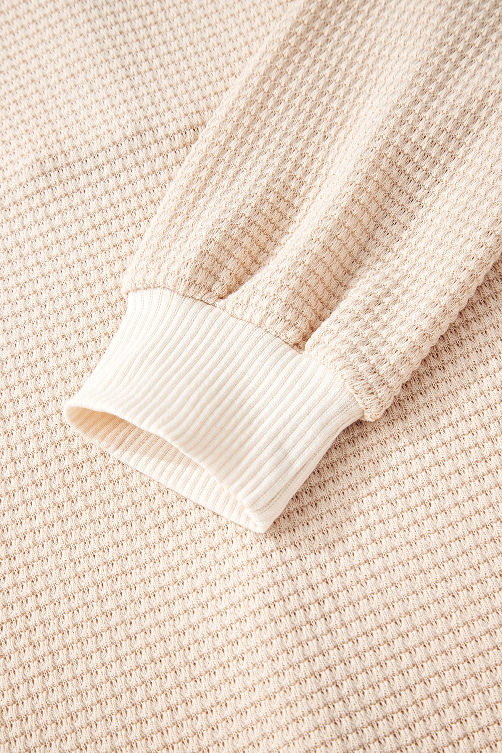 Oatmeal Waffle Patchwork Drop Shoulder Hooded Long Sleeve Top